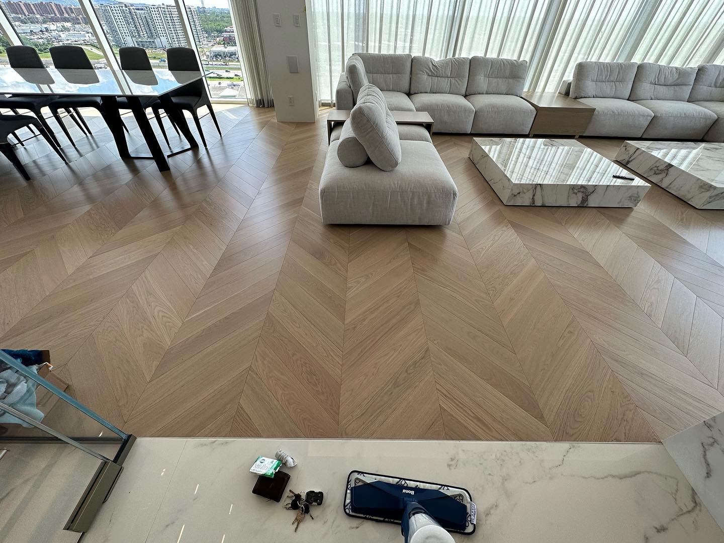 Spécialisés en installation de planchers dans Lanaudière, nos experts maîtrisent toutes les techniques de pose. Nous prenons votre projet en charge avec professionnalisme et précision de la première à la dernière étape d’installation. En sollicitant Couvre Planchers VML, vous avez la garantie d’une pose parfaite, méticuleuse, garante de qualité et de stabilité à long terme.
